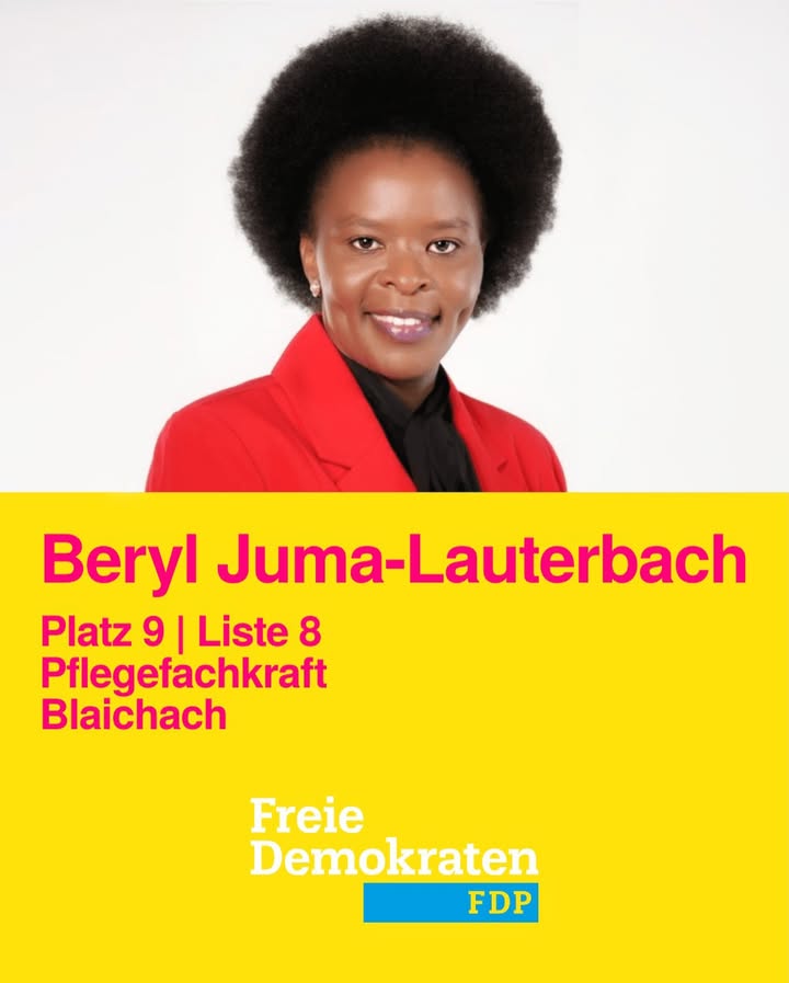 Unsere Beryl Juma-Lauterbach ist auf Platz 9 bei der Kreistagswahl 💛 Sie ist examinierte Pflegefachkraft und Stationsleiterin in einem Sonthofer Seniorenzentrum. Gemeinsam mit ihrer Familie lebt sie in Blaichach. Außerdem ist sie Autorin und hat 2025 ihr erstes Buch veröffentlicht 📖. Im Vorstand der @liberalefrauen_ke_oa ist sie ebenfalls aktiv. 💪 Bei der Kreistagswahl tritt sie an, um die Pflege zu stärken, Familien spürbar zu entlasten und eine verlässliche Betreuung zu sichern 🏥. Verantwortung für alle Generationen – das liegt ihr am Herzen. Kluge Politik fürs Oberallgäu. #MachenWirEsMöglich Am 08.03 #FDP wählen 🗳️